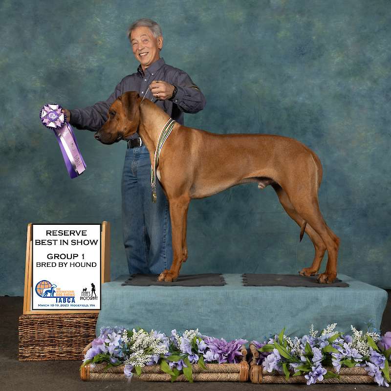 Benny had a very good show. He took 1st in class all 5 days, took Hound Group 1 3 days, took Reserve BIS 2 days and BIS on the last day.