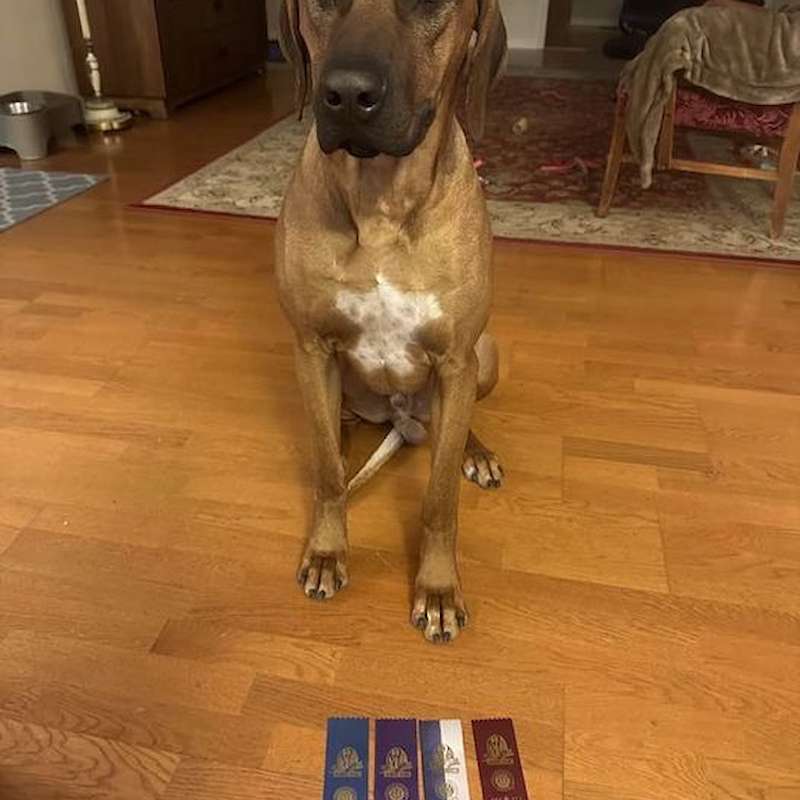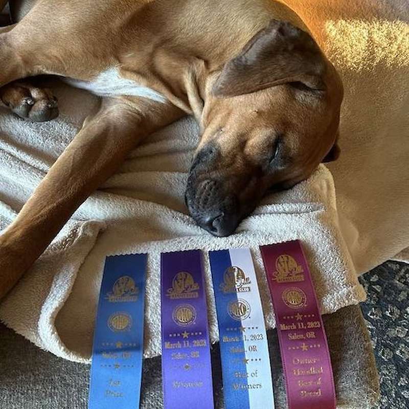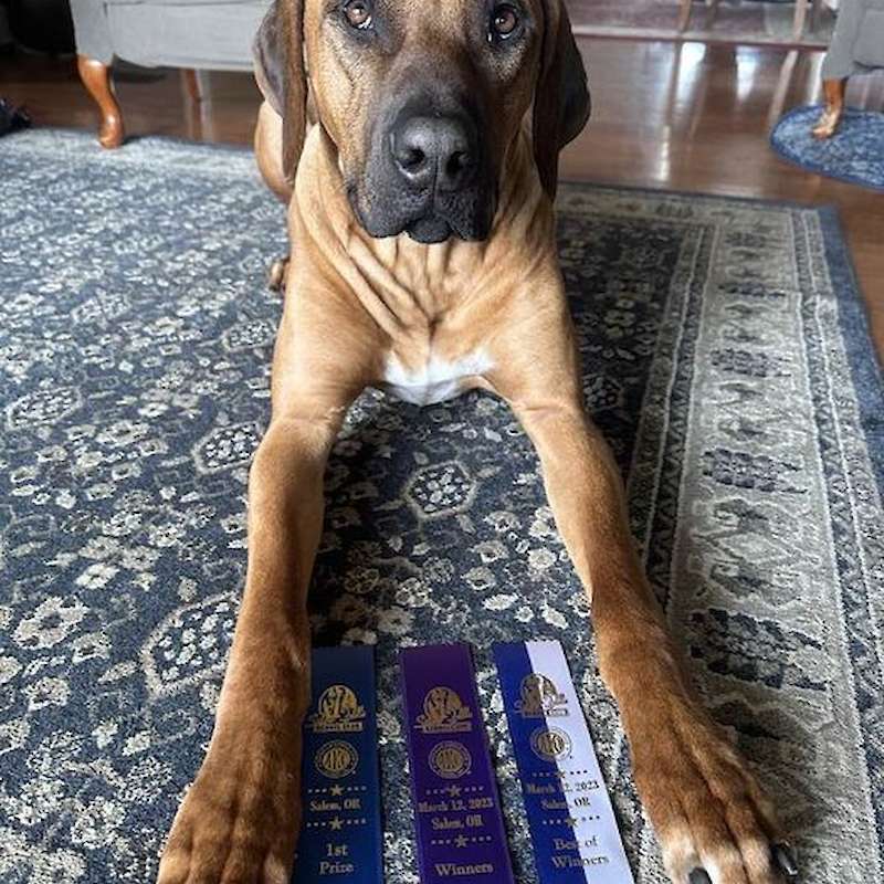 Linn County Kennel Club Dog Show in Albany, Oregon. Angus, 11mo old, took back to back major wins on the 25th and 26th. He took Winners Dog and Best of Winners both days.