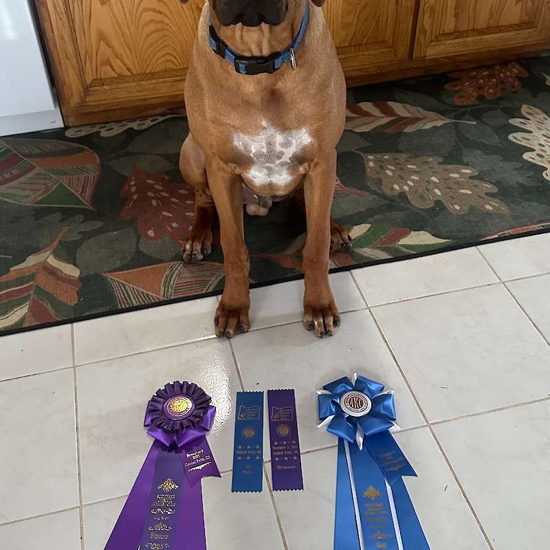 On January 16, 2023 at the Western Washington 2023 Winter Cluster, Angus got Winners Dog and Best of Winners, for his first time working up into the Best of Breed Ring. This was Angus' first time in a show ring and performed very well