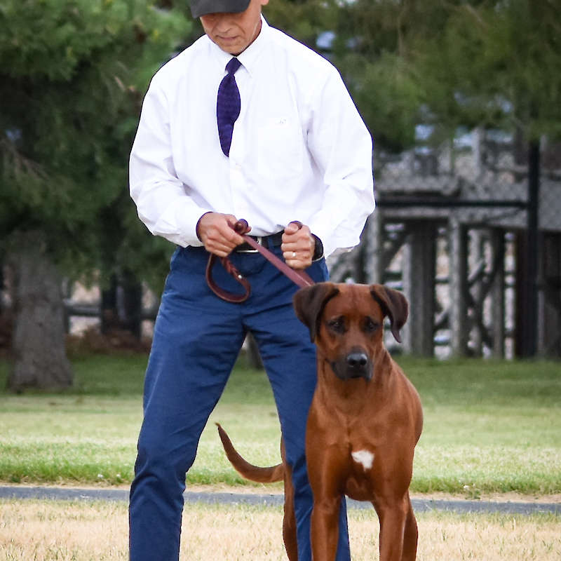 We do not do conformation showing with Enzo any longer but do FastCat and some Lure coursing with him. As of 10/20/2021, Enzo is #9 for Rhodesian Ridgebacks on AKC.