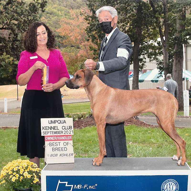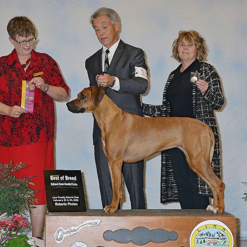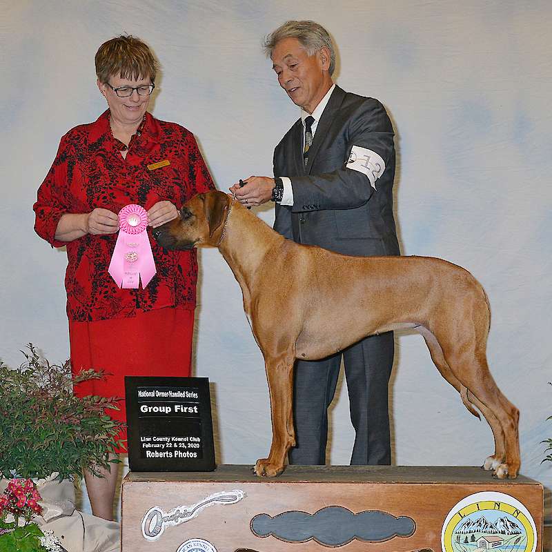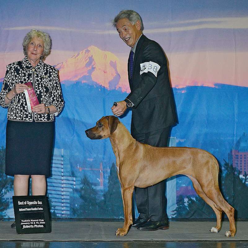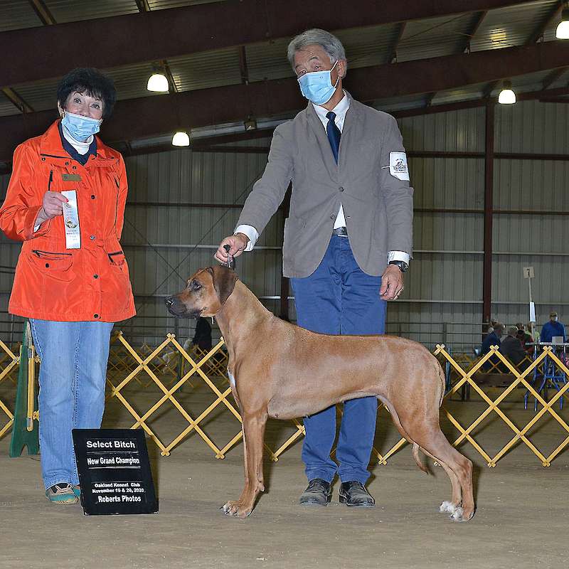 Spring acquired her Championship at the end of 2019 and started 2020 on a roll with two Best of Opposites and two Group 2 NOH at the Portland Dog show in January 2020, then a Best of Breed and Best of Opposites at the Chintimini Dog show in Albany Oregon in Feburary 2020. Then COVID lockdowns hit. There was no dog shows for us until October 2020 in Corning, CA where she acquired her Grand Champion title.